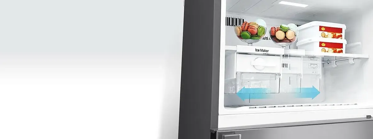 *Based on UL test results using LG’s internal testing method comparing time for the temperature of the water container placed in the top basket to drop between DoorCooling+™ and Non-DoorCooling+™ models. Applicable models only. The images of the product are for illustration purposes only and may differ from the actual product.